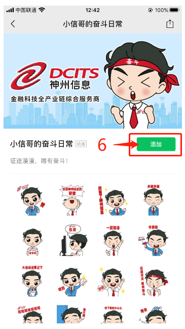 5、点击表情专辑“小信哥的奋斗日常”