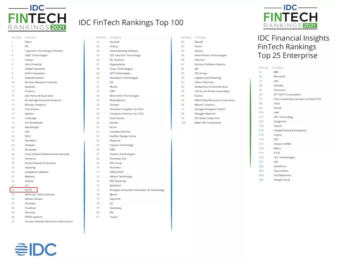 2021年度 IDC Fintech Rankings(IDC全球金融科技排行榜)及 IDC Fintech Rankings Real Results Awards (IDC全球金融科技真实价值奖) 于2021年9月13日正式揭晓。